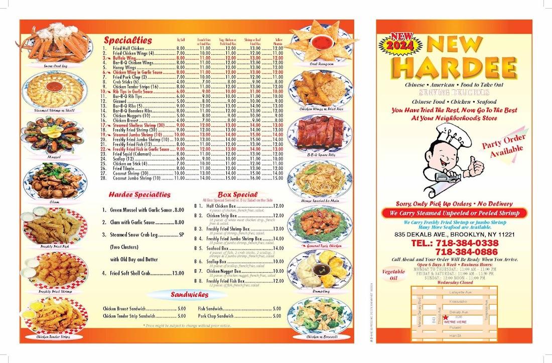 Located at 835 DeKalb Ave, New Hardee stands out as a local gem in Brooklyn for Chinese American cuisine, merging the flavors of the East and West with passion. Known for standout dishes like fried Old Bay shrimp and house special pork chops, the restaurant draws a diverse crowd, including university students and tourists seeking authentic yet accessible eats. Our prices range from $10 to $20, offering excellent value paired with our famed hospitality. The friendly staff, especially the man with glasses greeting guests, adds warmth to every visit. Despite the bustling Friday night rush reaching full capacity, we handle service smoothly, welcoming guests seven days a week except Wednesday. Embrace the New Hardee experience: familiar, fresh, and focused on community tastes and comfort. Make us your favorite spot for lunch, dinner, or a late-night bite.